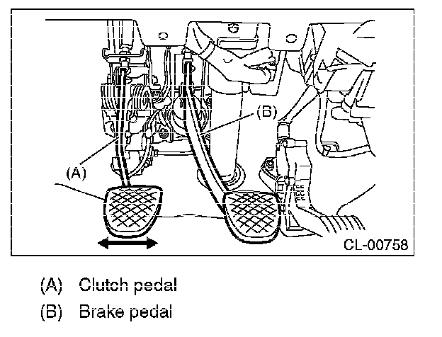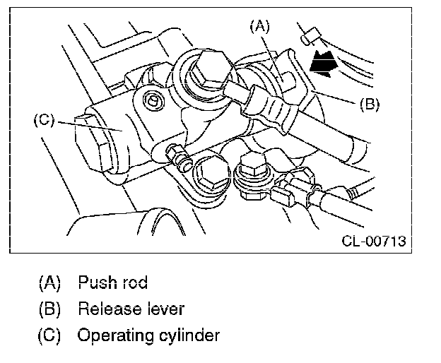 2) Depress and release the clutch pedal two or three times to ensure that the clutch pedal and release lever operate smoothly. If the clutch pedal and release lever do not operate smoothly, bleed air from the clutch hydraulic system.