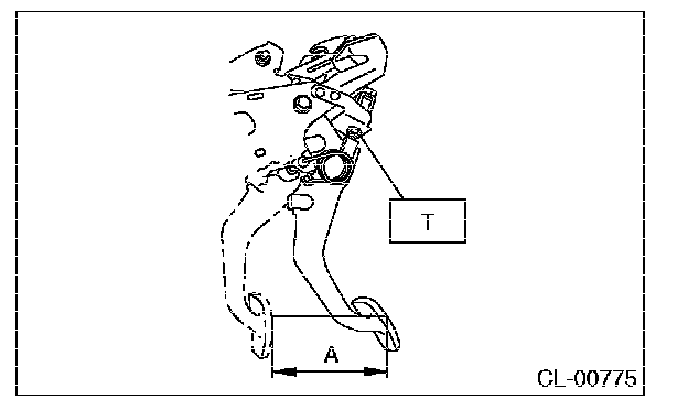 3) Measure the clutch pedal full stroke length again to ensure that it is within specifications. If it is not within specifications, repeat adjustment procedures again from the beginning.