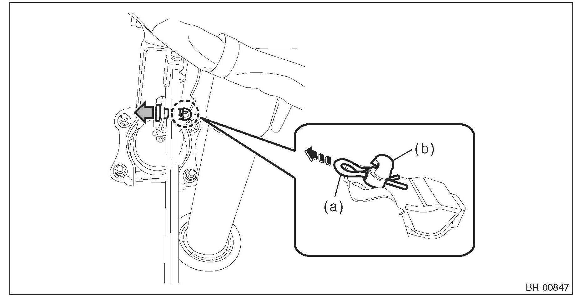 (3) Remove the snap pin (a) and clevis pin (b), and remove the operating rod from the brake pedal.