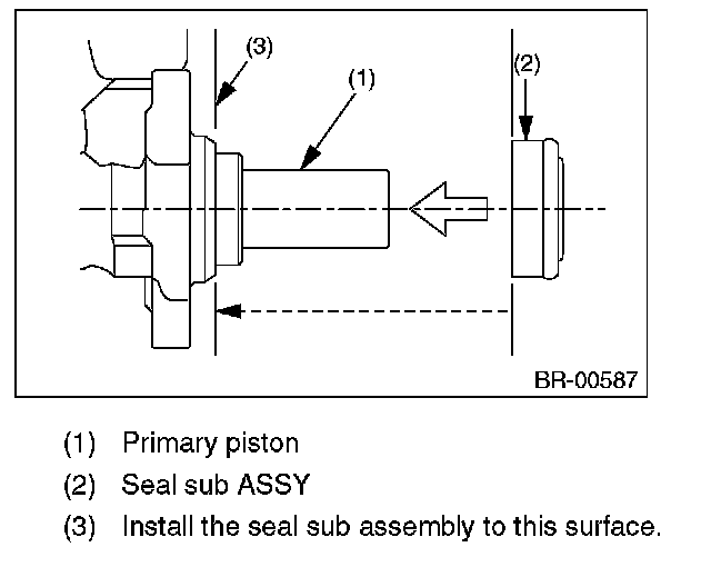^ When installing the master cylinder assembly, replace the seal sub assembly with a new part, and install it to the brake booster.