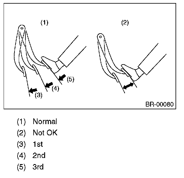 1) While the engine is OFF, depress the brake pedal several times applying the same pedal force, to check for a change in pedal height.