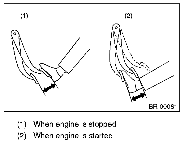3) As the engine starts, the brake pedal should move slowly toward the floor. If the pedal height does not change, the brake booster is faulty.