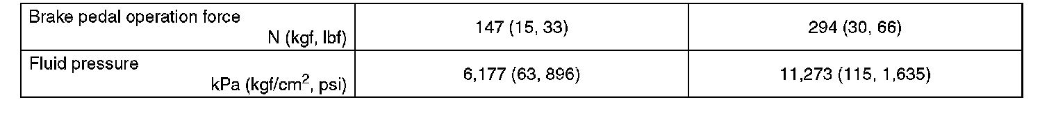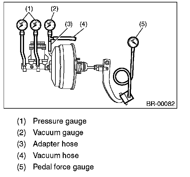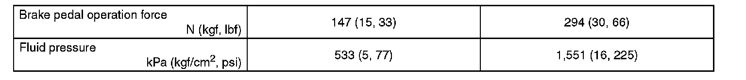 Turn the engine OFF, and set the value of the vacuum gauge to "0". Then, check the fluid pressure when the brake pedal is depressed. The pressure must be greater than the specification listed.