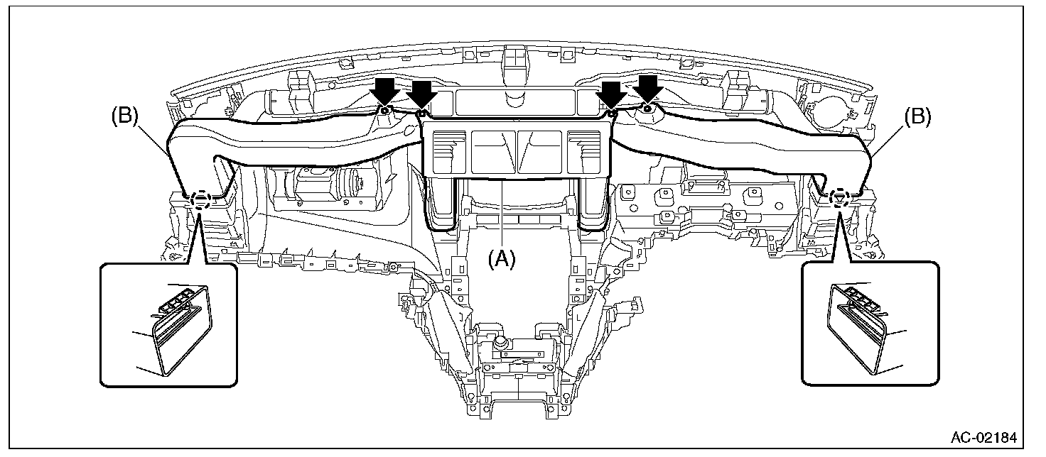 2. Release the claws and remove the screws, then detach the side vent ducts LH and RH (B).