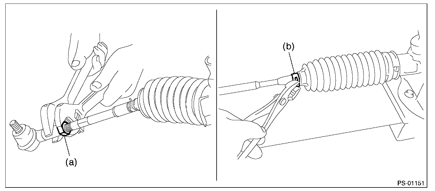 (2) Remove the clip (b) of boot outside using the pliers, and then slide the boot to the tie-rod end side.