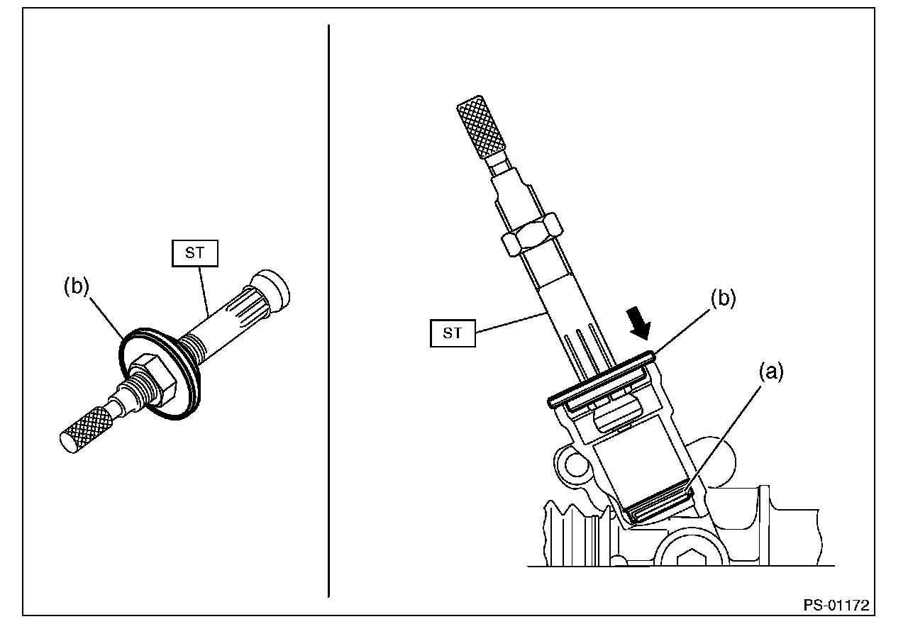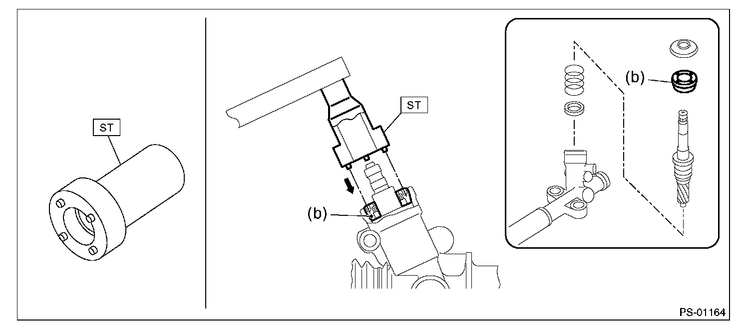(2) Set the stopper (b) to gearbox, then insert the tip of the ST to the gearbox.