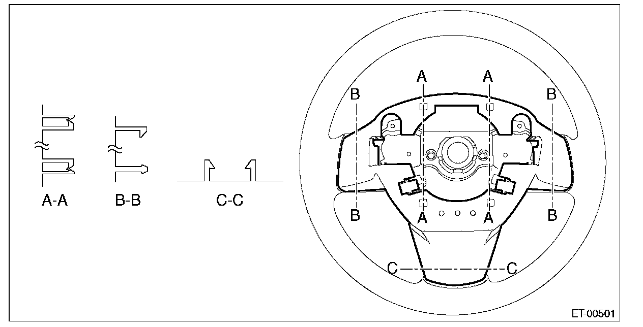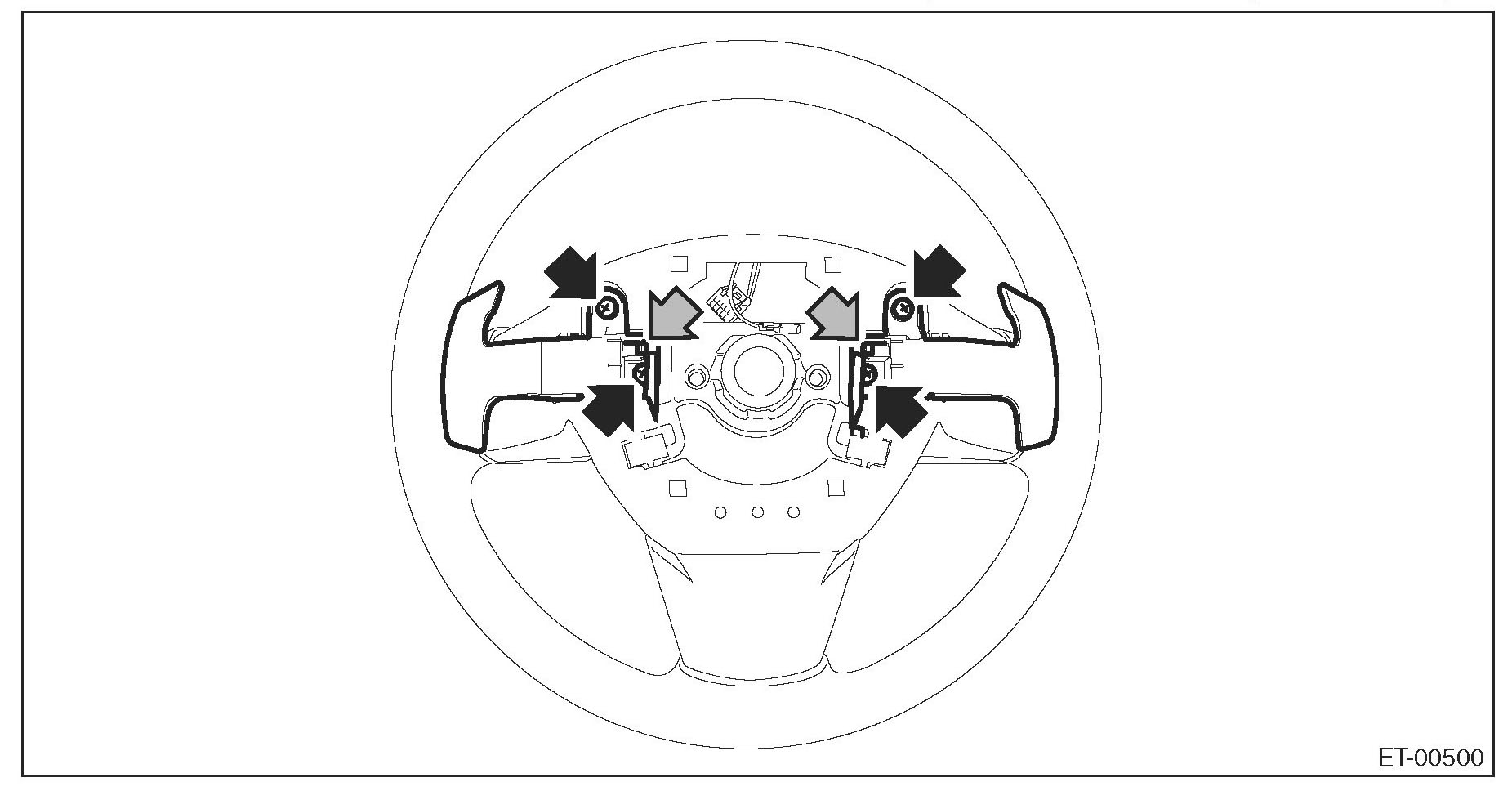 1) Remove the screw, disconnect the connector and remove the paddle shift switch. (Model with paddle shift)