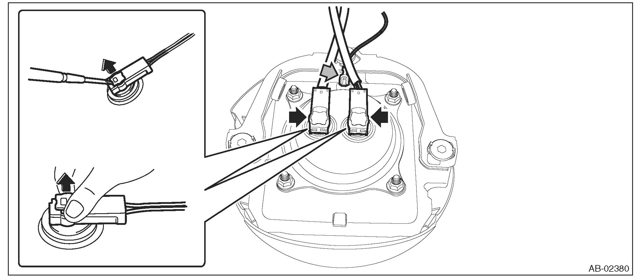 (2) Disconnect the airbag connector and remove the airbag module assembly.