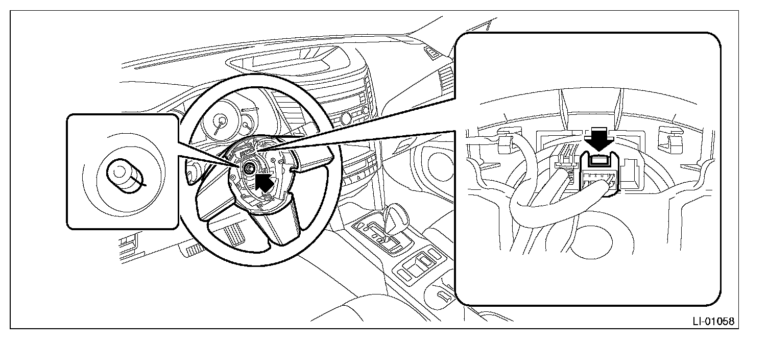 ^ If the steering wheel has been removed, make sure that the roll connector is not turned from the original position.