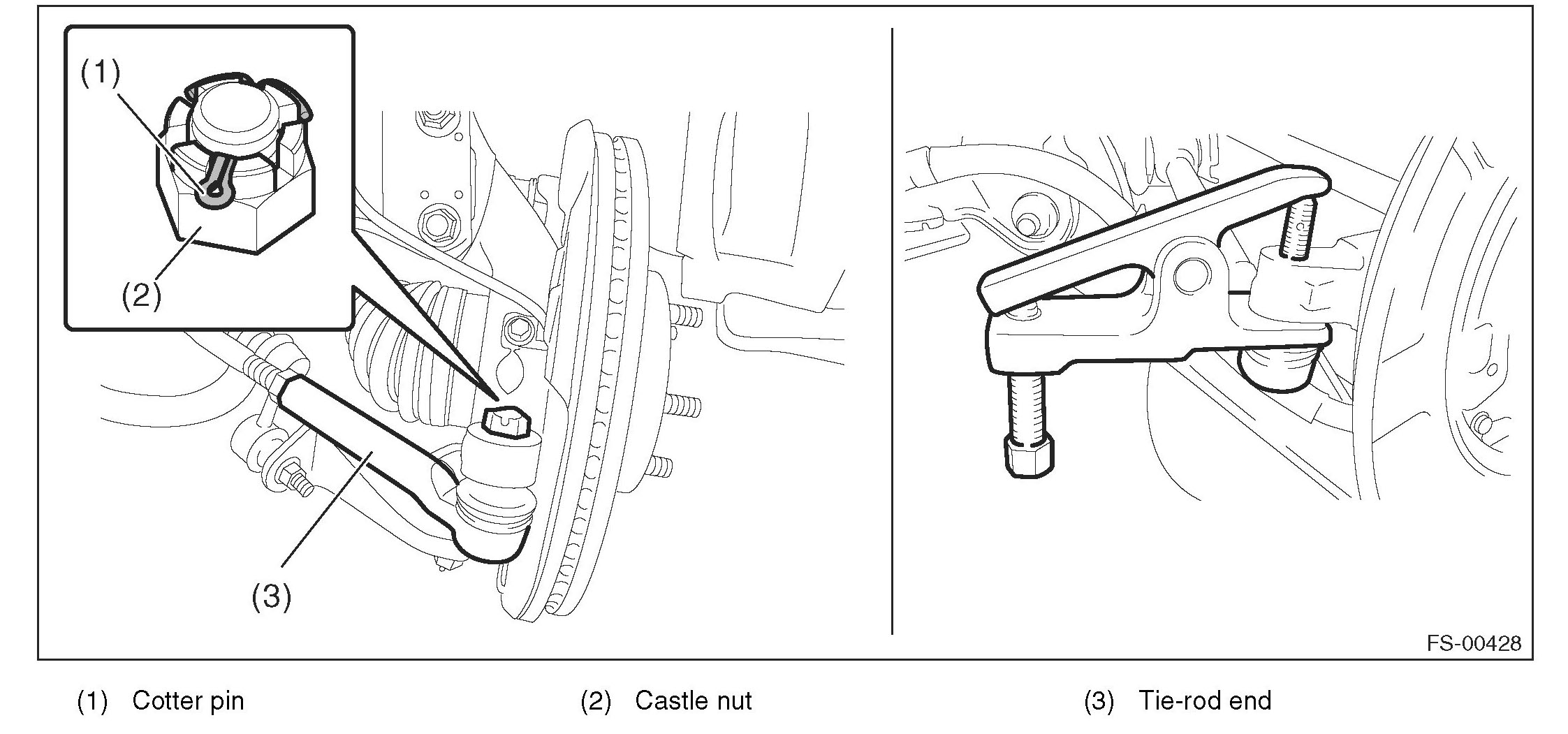c) Extract the tie-rod end from the front axle housing.