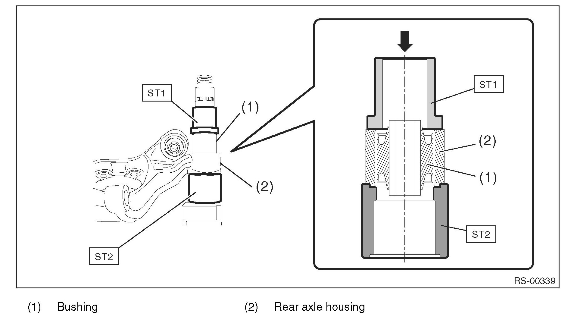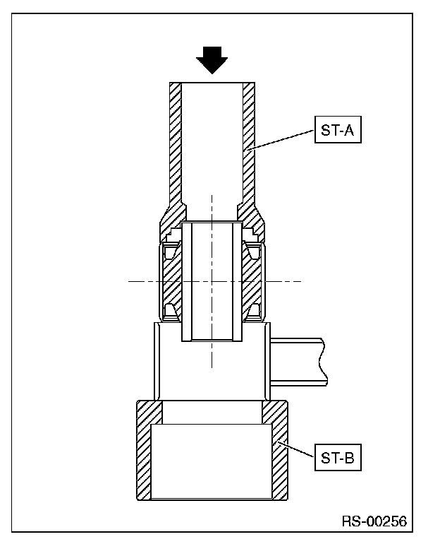 2) Using the ST-A and ST-B, press-fit the bushing.