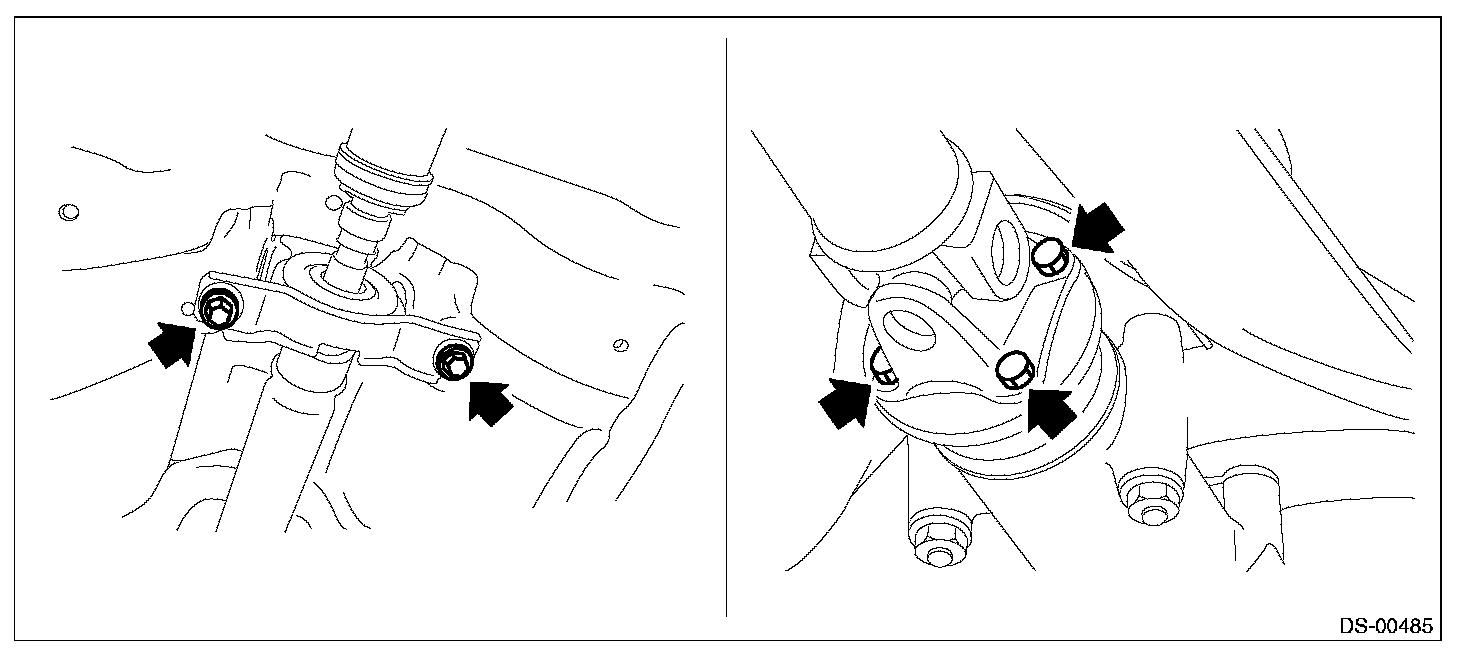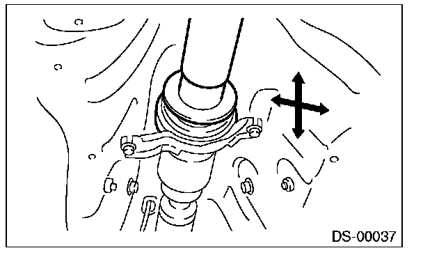 7) Check the center bearing for free play. Move the propeller shaft near the center bearing up, down, left, right by hand, to check for any abnormal free play of the bearings.