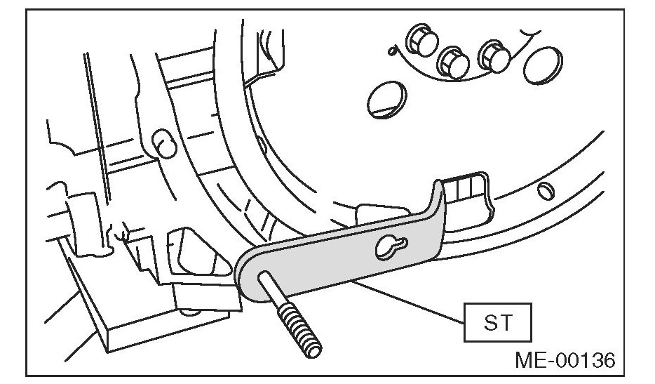 2) Use the ST to lock the crankshaft, and remove the drive plate.