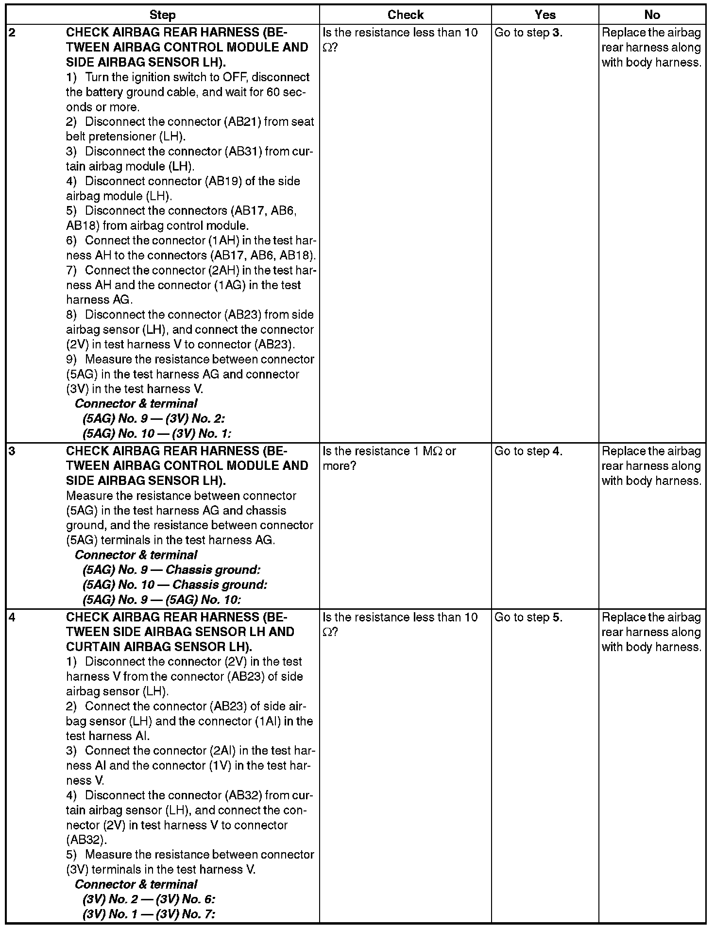 - When inspecting the airbag rear harness, disconnect the side airbag module connector, curtain airbag module connector and seat belt pretensioner connector for safety reasons.
