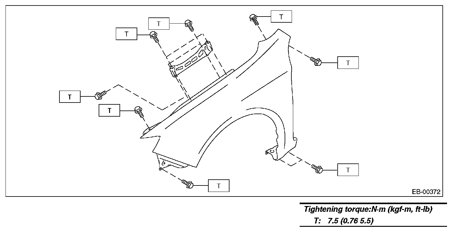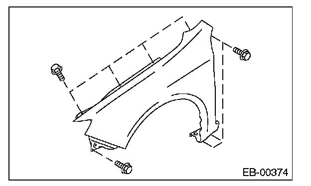 CAUTION: After the installation of front fender panel, be sure to perform headlight beam adjustment.