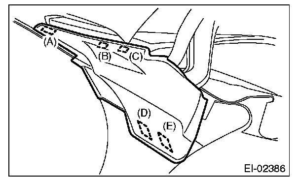 1. Detach tabs (A), (B), and (C) from the vehicle exterior.