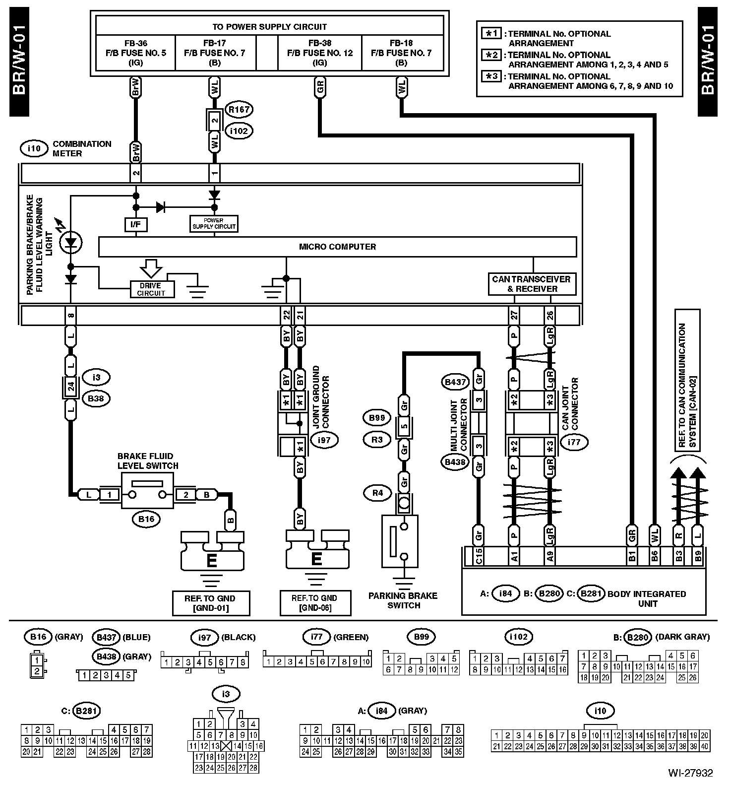 Parking Brake / Brake Fluid Level Warning Light SystemConnector and Ground Locations: The locations of the Connectors or Grounds shown within these diagrams can be found via the connector or ground number at Vehicle Locations. Locations