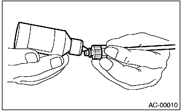 When replacing or installing/removing A/C parts, immediately isolate the oil from atmosphere using a plug or tape. In order to avoid moisture, store the oil in a container with its cap tightly closed.