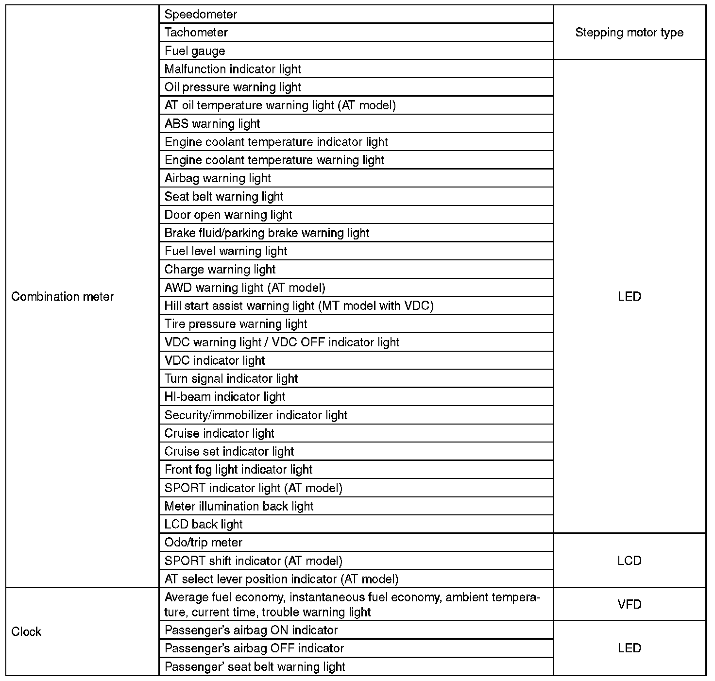 Instrument Panel, Gauges and Warning Indicators: Specifications