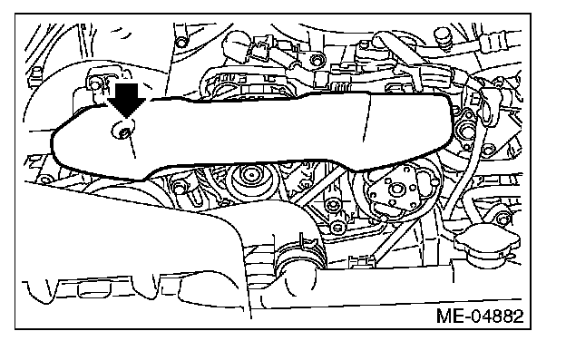 9) Place the rib surface of the rear side belt into the crank pulley groove, so that the rear side belt comes in between the belt guide holder.