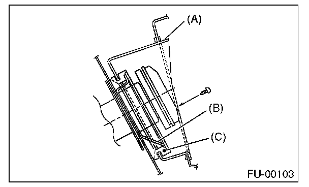 3. Align the holes in fuel filler pipe neck and set the cup (B), and tighten the screws.