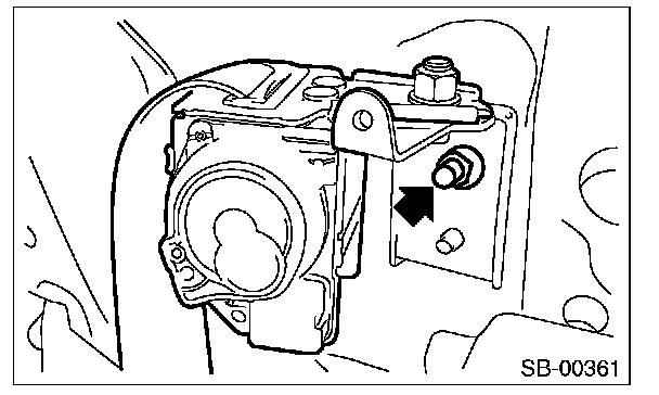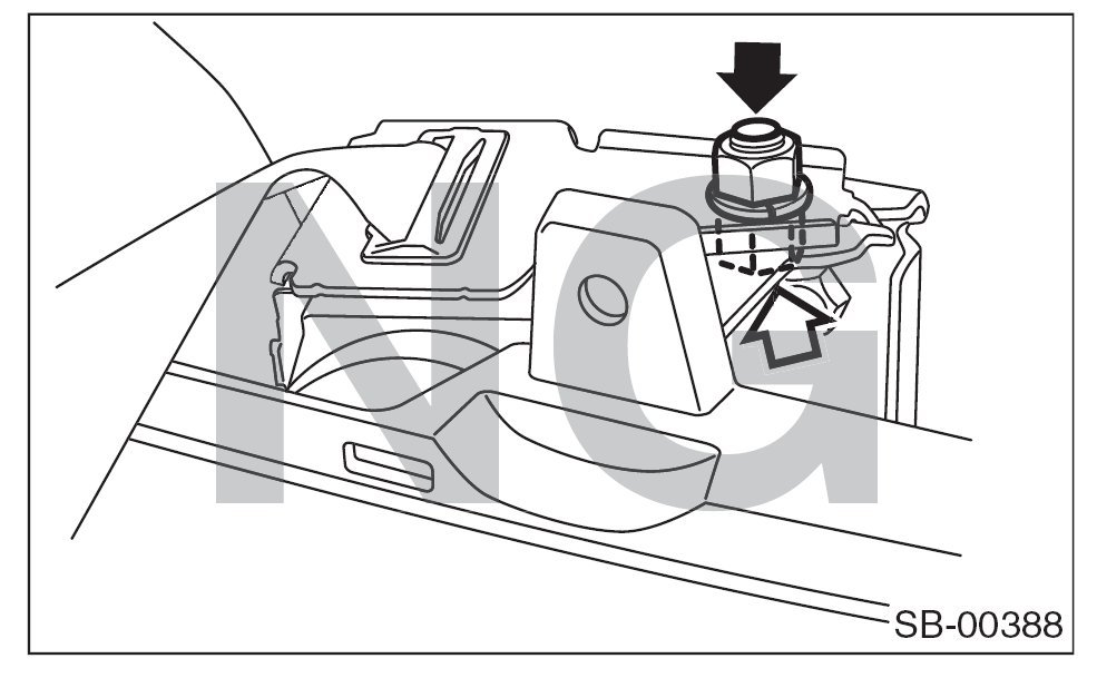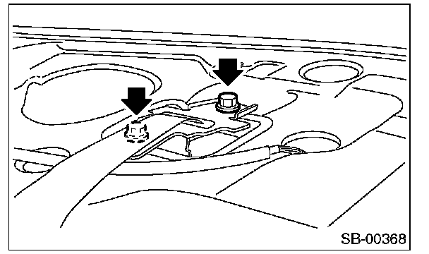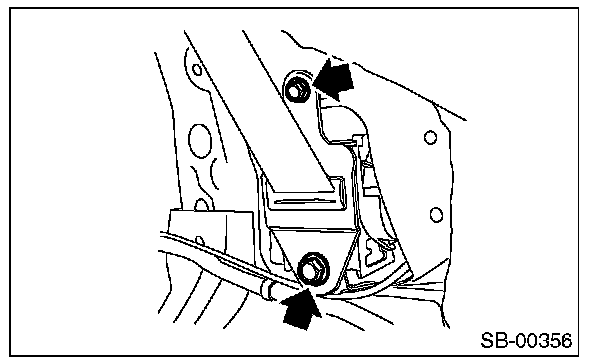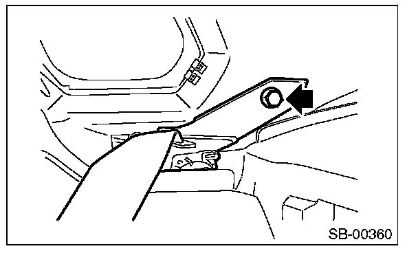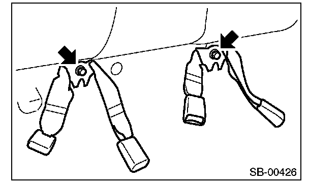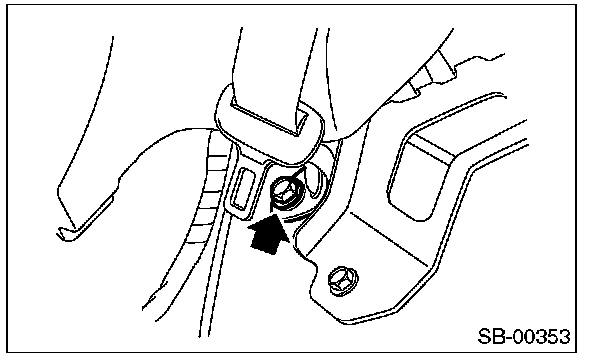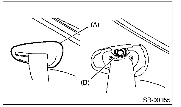 2. Remove the shoulder anchor bolt (B) and remove the shoulder anchor from the quarter pillar.