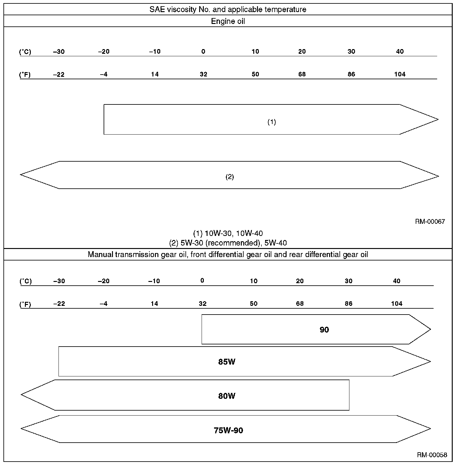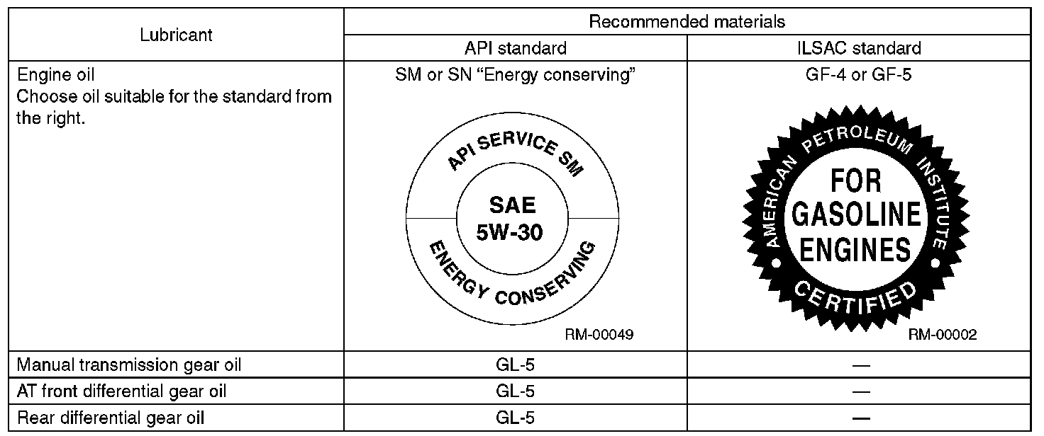 Use the lubricants shown in the table below, or equivalent. See the table below to choose the correct SAE viscosity.