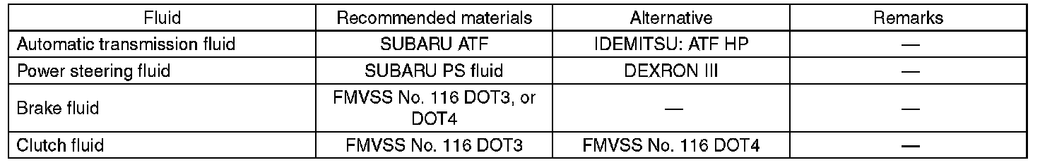 Use the fluids specified in the table below. Do not mix two different kinds or makes of fluid.