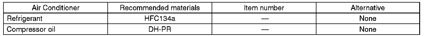 Standard air conditioners on Subaru vehicles use HFC134a refrigerant. Do not mix it with other refrigerants. Also, do not use any compressor oil except for DH-PR.