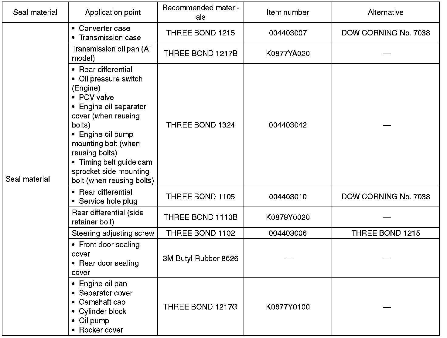 To insure the best performance, always use the specified oil, gasoline, adhesive, sealant, etc. or a substitute of equivalent quality.