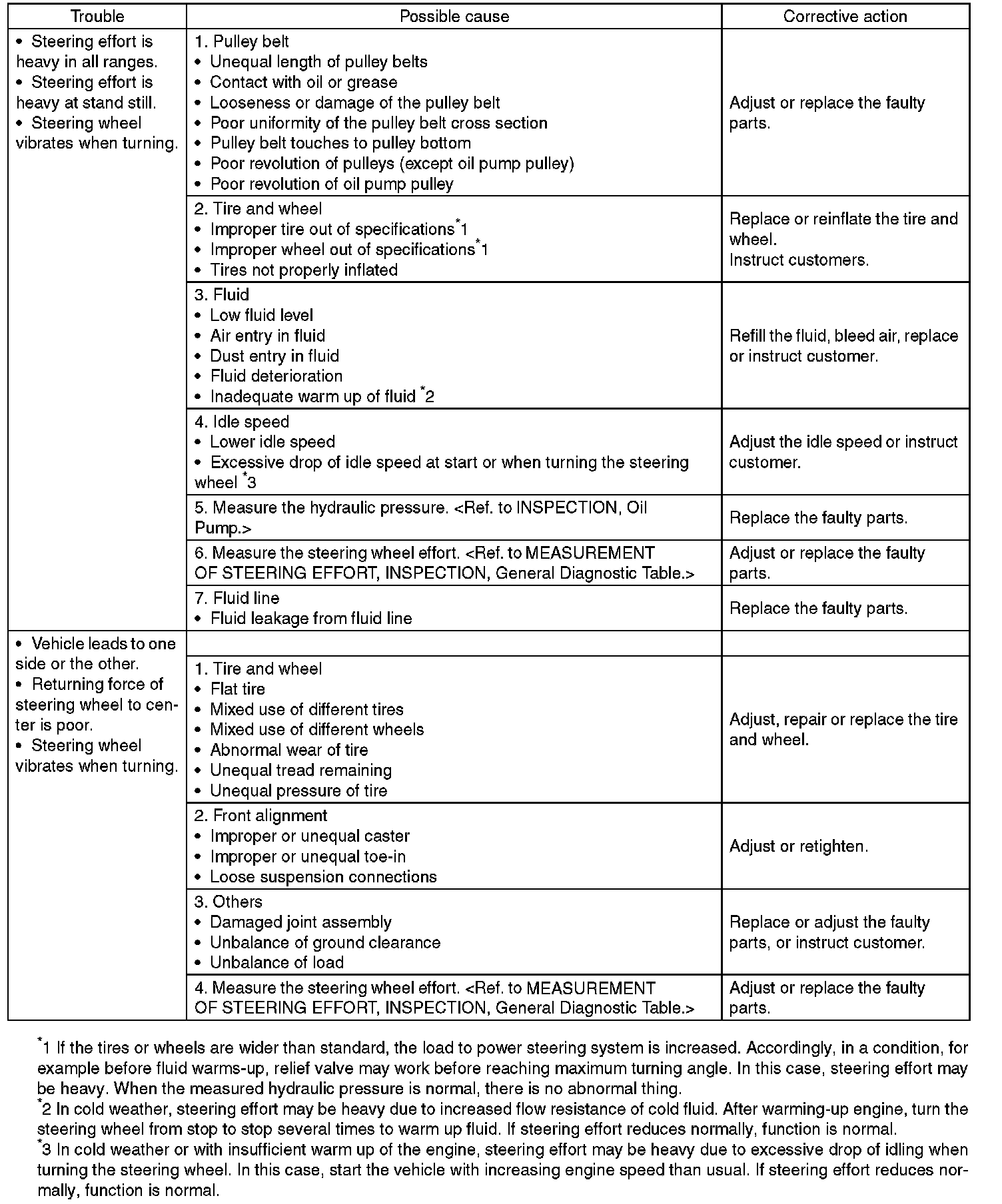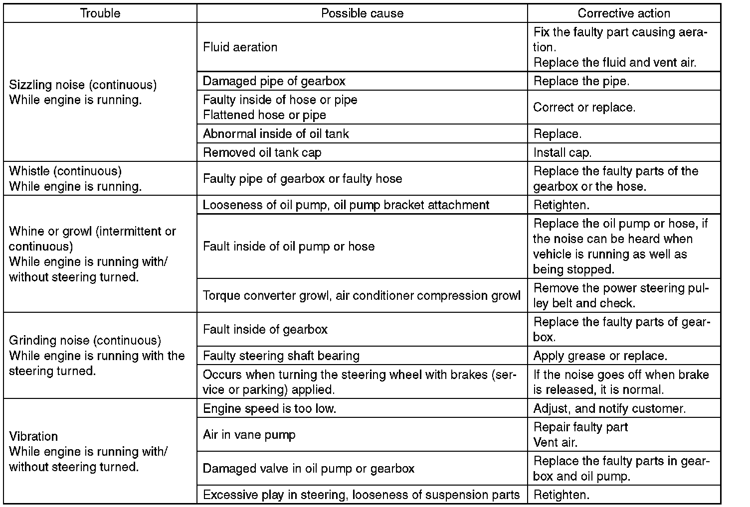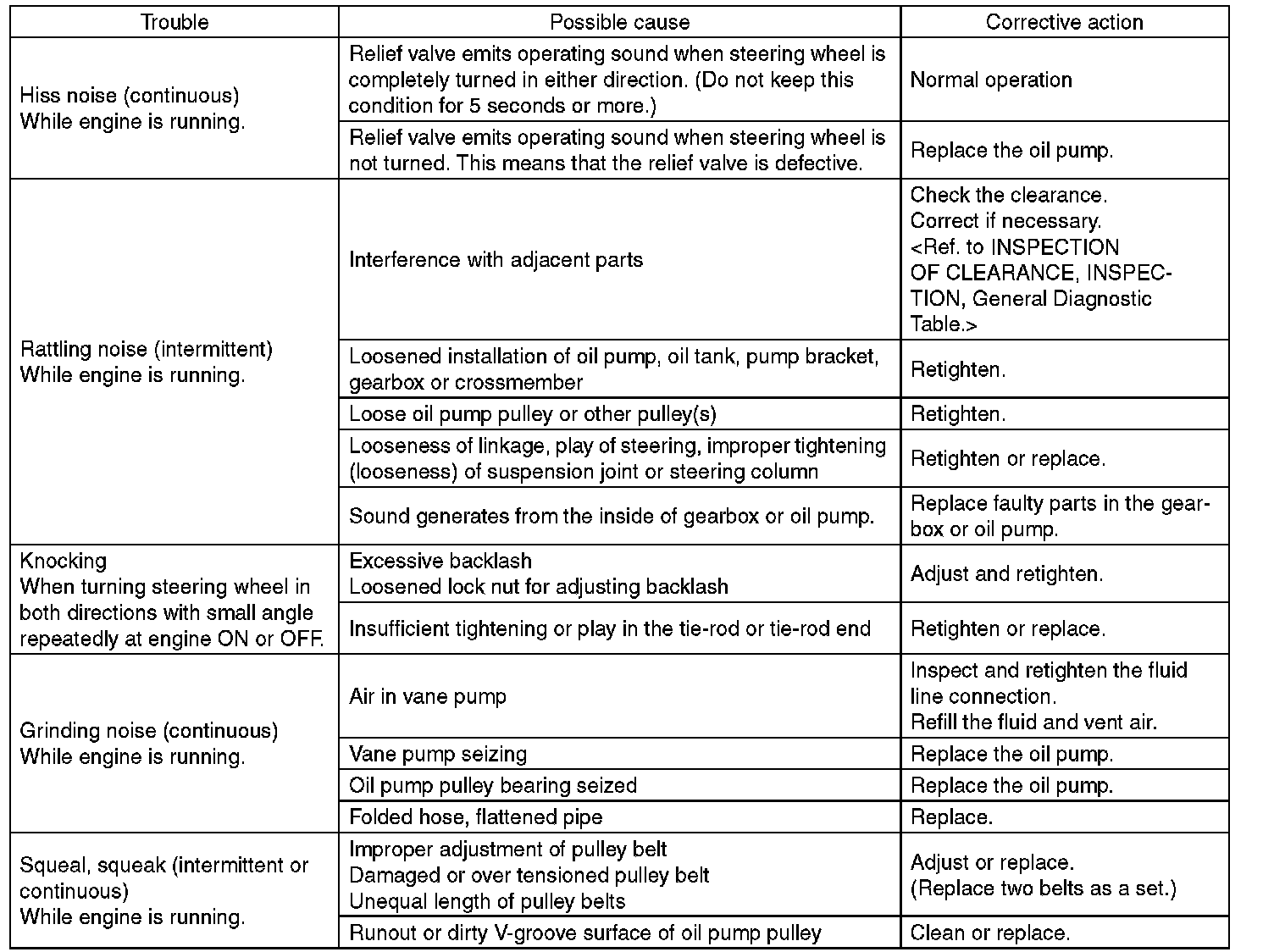 ^ The oil pump normally makes a small whining noise due to its mechanism. Even if a noise is heard when steering wheel is turned at stand still, there is no abnormal function in the system provided that the noise eliminates when the vehicle is driving.