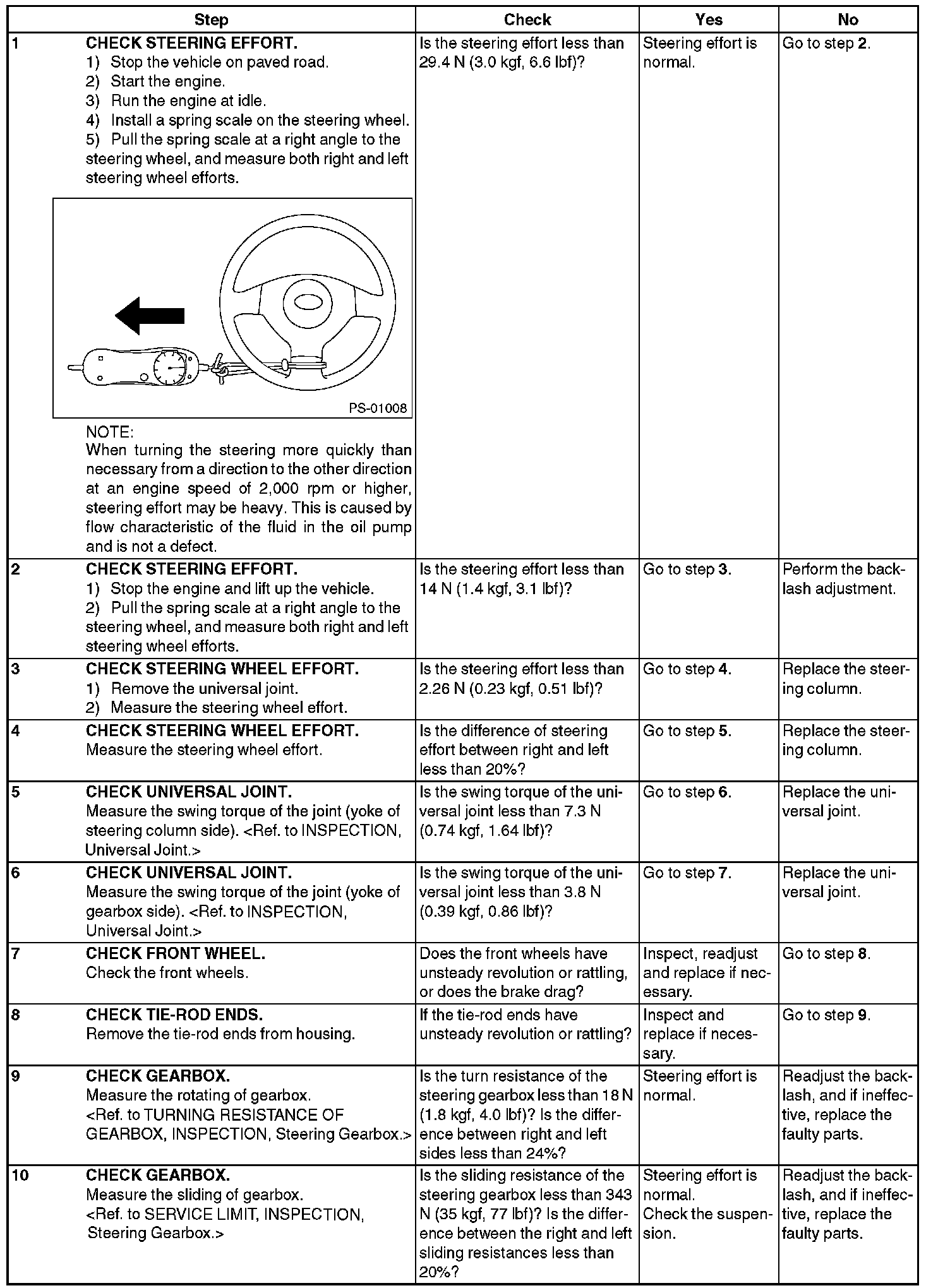 Steering: Testing and Inspection