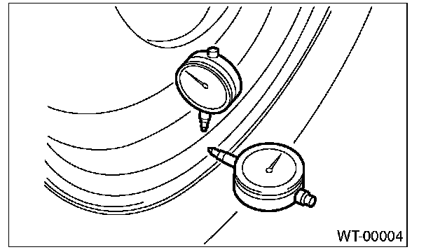 (2) Slowly rotate the wheel to check rim "runout" using a dial gauge.