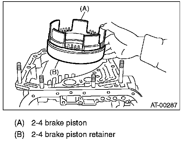 20) Remove the 2-4 brake piston and 2-4 brake piston retainer while taking care not to damage them.