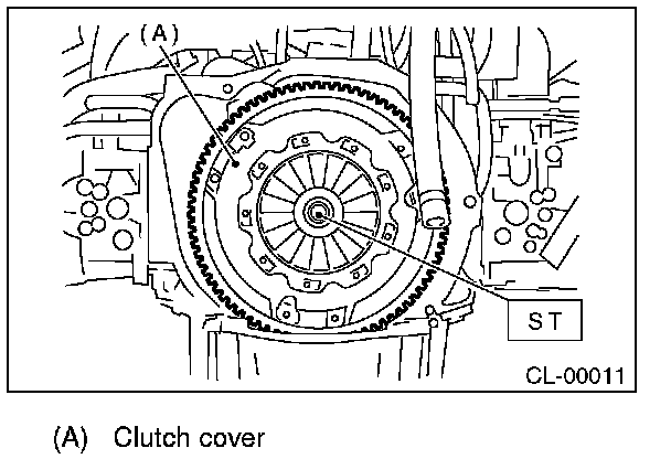 2) Install the clutch cover to the flywheel and tighten the bolts to the specified torque.