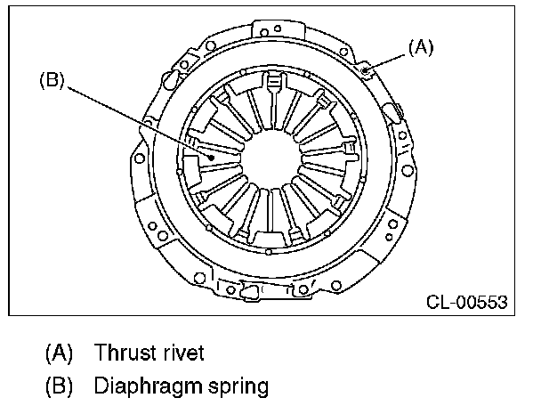 2) Damaged or worn bearing contact area at the center of diaphragm spring