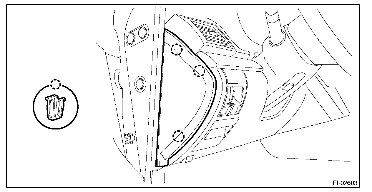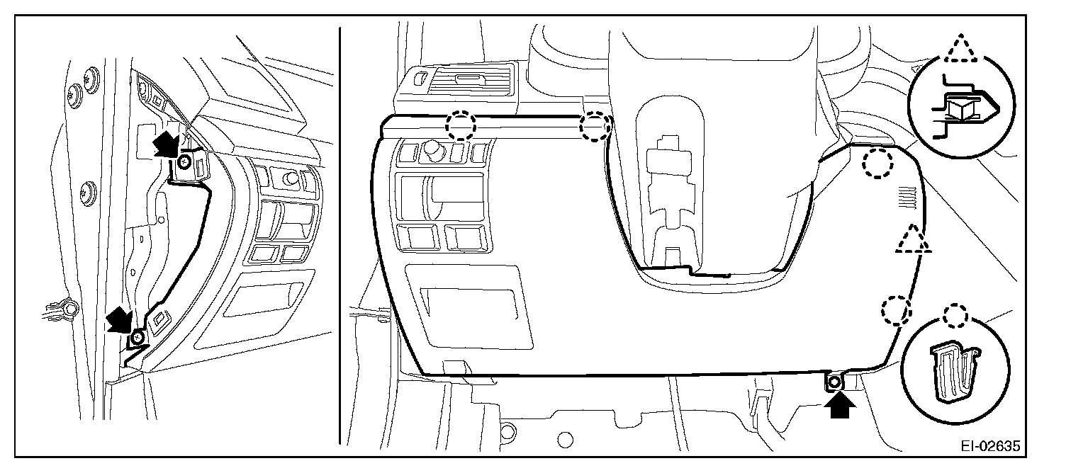 (2) Remove the clips, and remove the instrument panel side cover LH.