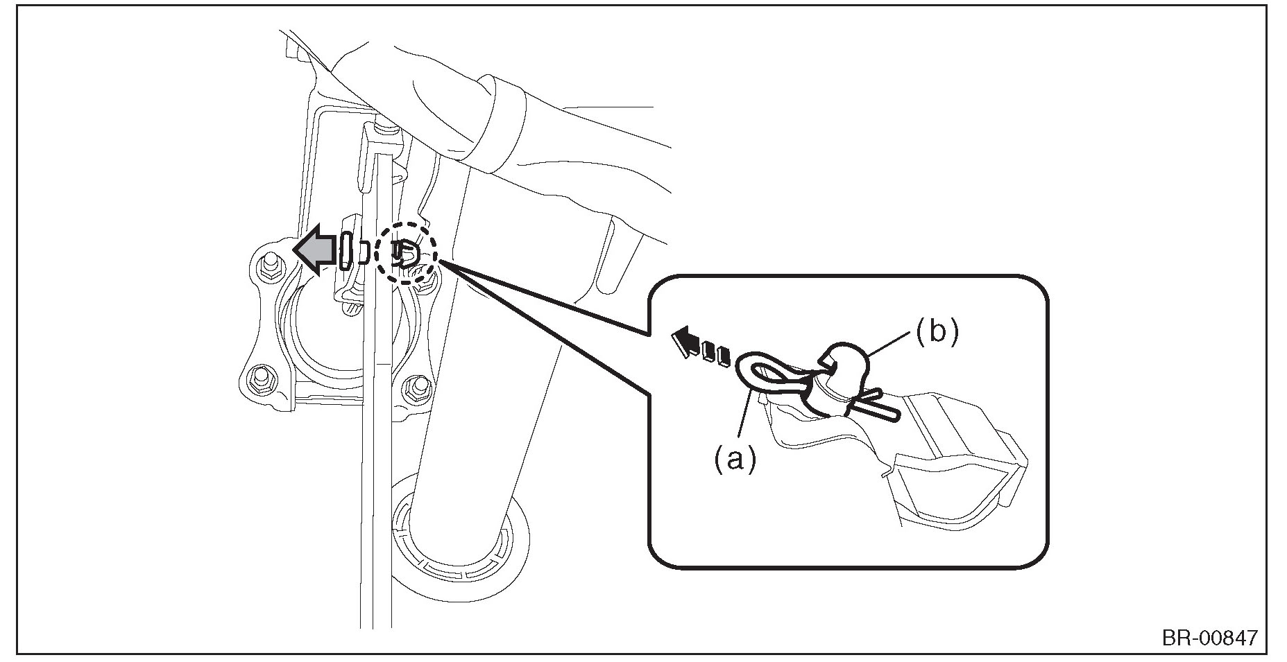 (2) Disconnect the brake pipe (b).