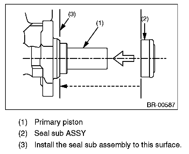^ When installing the master cylinder assembly, replace the seal sub assembly with a new part, and install it to the brake booster.