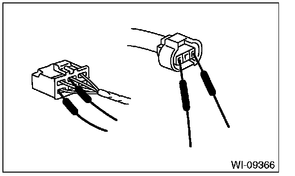 To check water-proof connectors (which are not measurable from the wiring side), contact test probes on the terminal side. Be careful not to bend or damage the terminals.