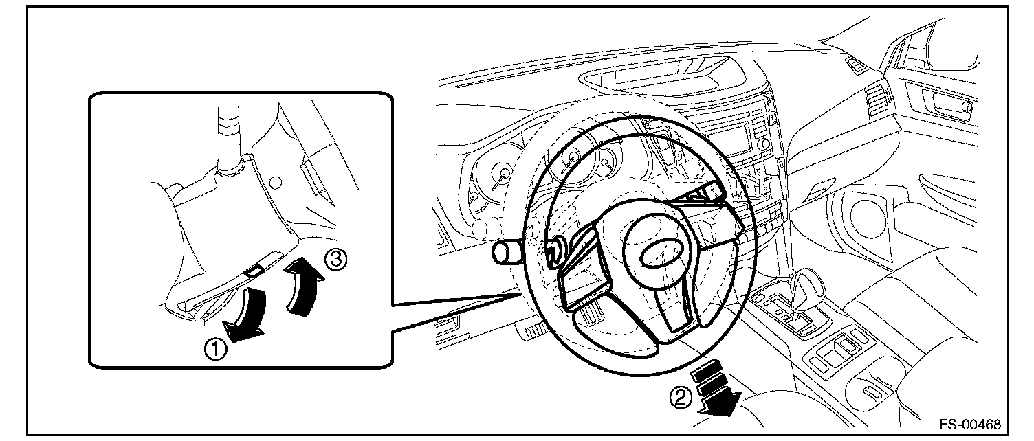 1) Adjust the tilt position of the steering column to the lowest position and lock the tilt lever.