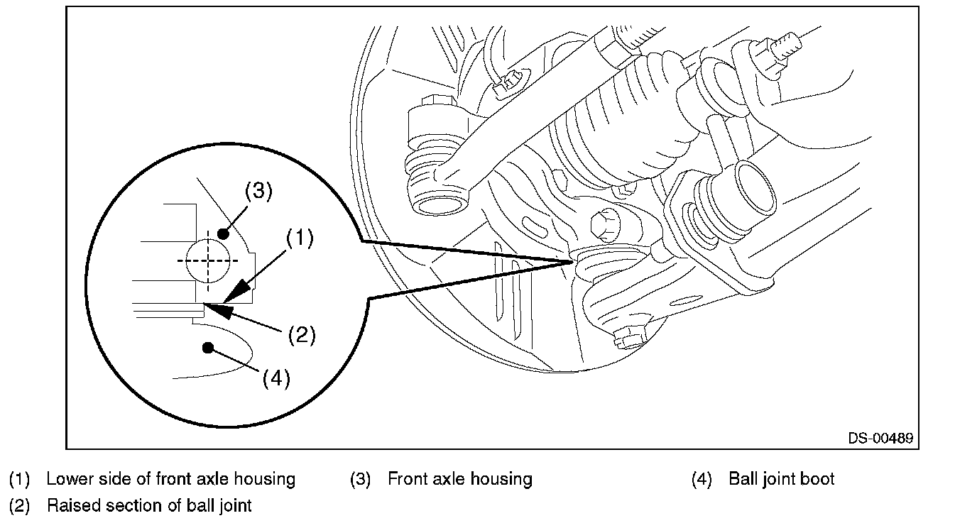 Before tightening, make sure the lower side of front axle housing and stepped section of ball joint are in contact.