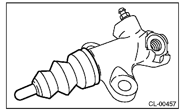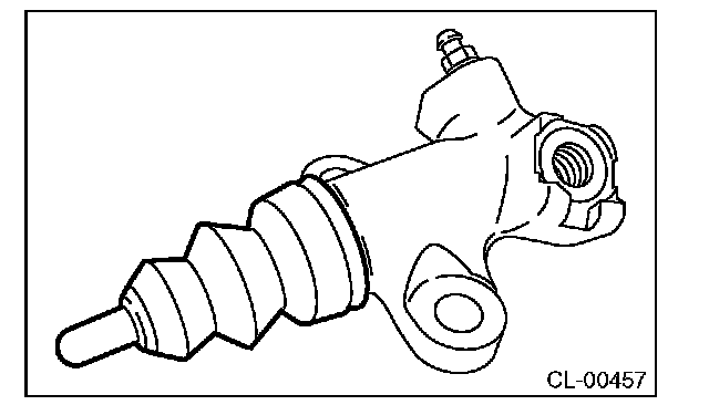 2) Check the clutch fluid leakage on the operating cylinder or the boot for damage. Replace the operating cylinder if clutch fluid leaks or boot damages are noted.