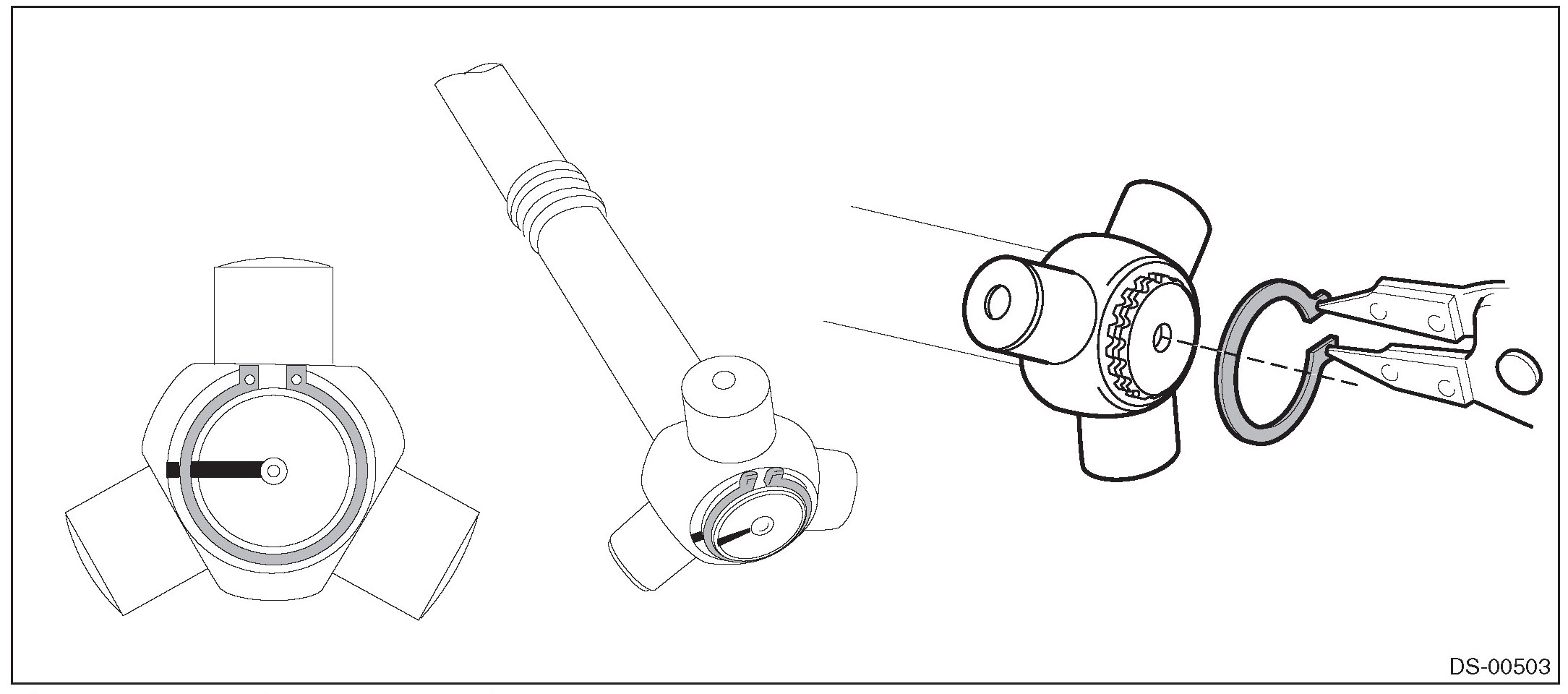 Confirm that the snap ring is completely fitted in the shaft groove.