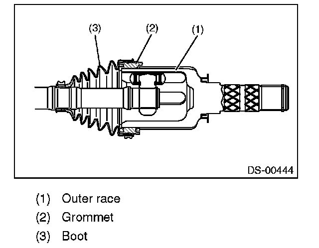 9) Insert a flat tip screwdriver, etc. between outer race and grommet to make pressure inside of boot as high as barometric pressure.