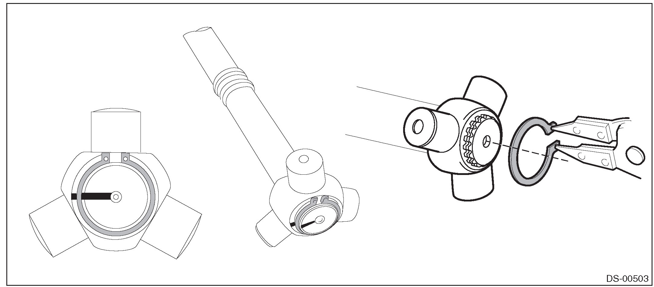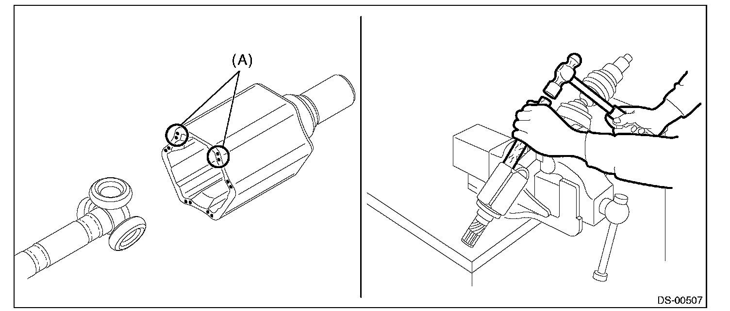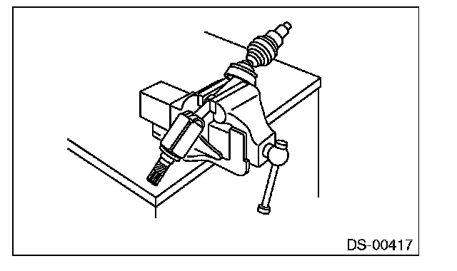 (3) Place the drive shaft between wooden blocks and fix it on a vise.
