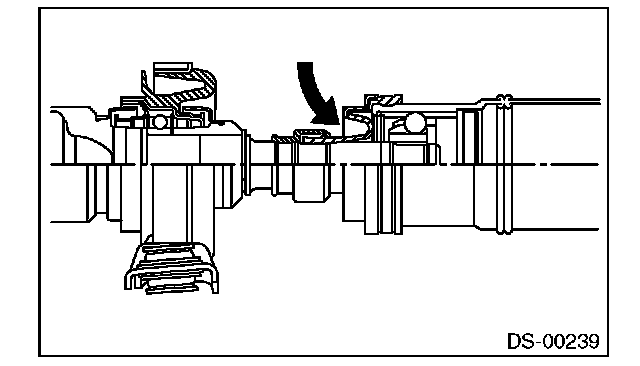 ^ Before removing propeller shaft, wrap the metal parts attached to the rubber boot of the center joint with a cloth or rubber material, as shown in the figure. The rubber boot may be damaged due to interference with adjacent metal parts while bending the joint during removal.
