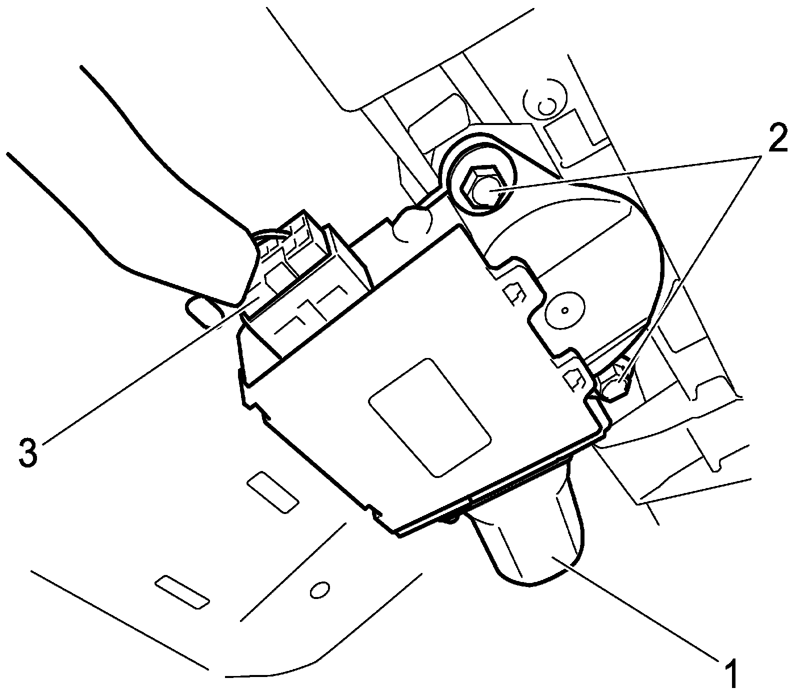 3. Disconnect sun roof motor connector (3) and remove sun roof motor (1) by removing sun roof motor bolts (2).