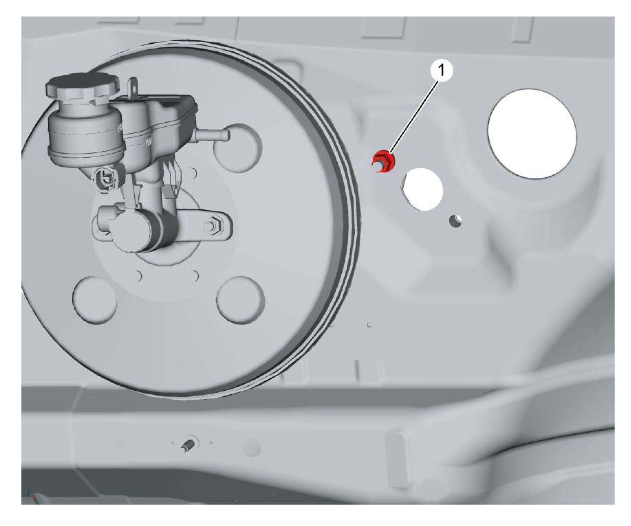 6) For CVT model, remove brake pedal bracket nut (1) located in engine compartment.
