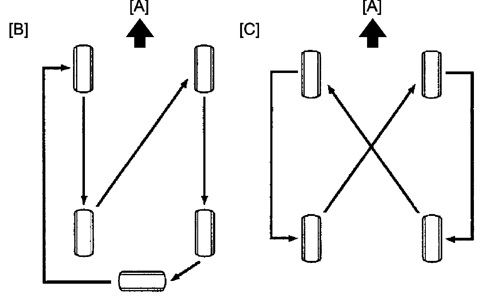 Tire RotationTo equalize tire wear, rotate tires periodically as shown in the figure.